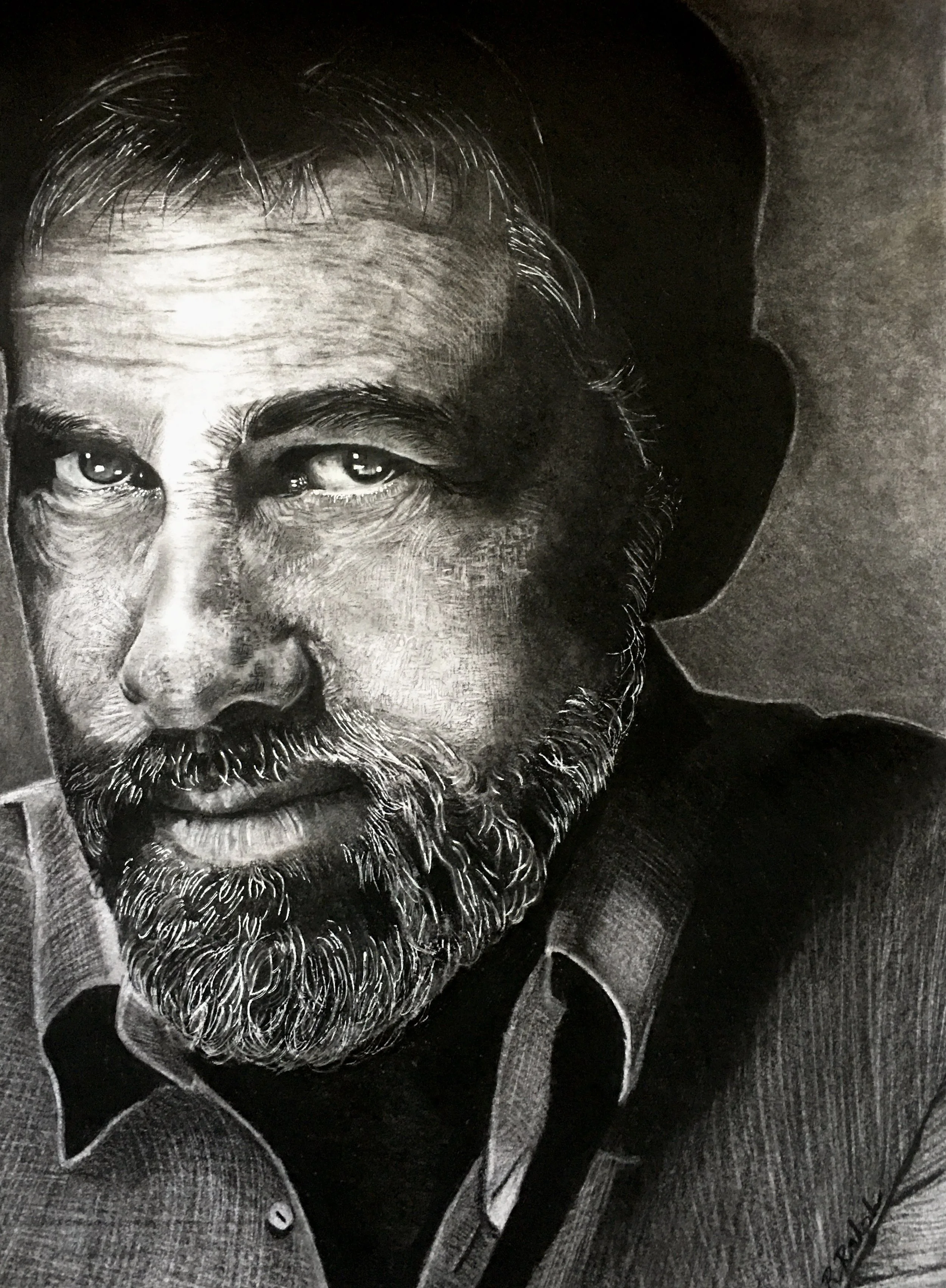 At the heart of this collection is a deep interest in faces, animals and eyes; elements that carry emotional weight and invite close observation. I work across a range of media, focusing particularly on tonal depth and detail. I use light and shadow to reveal the subtleties of form and expression.