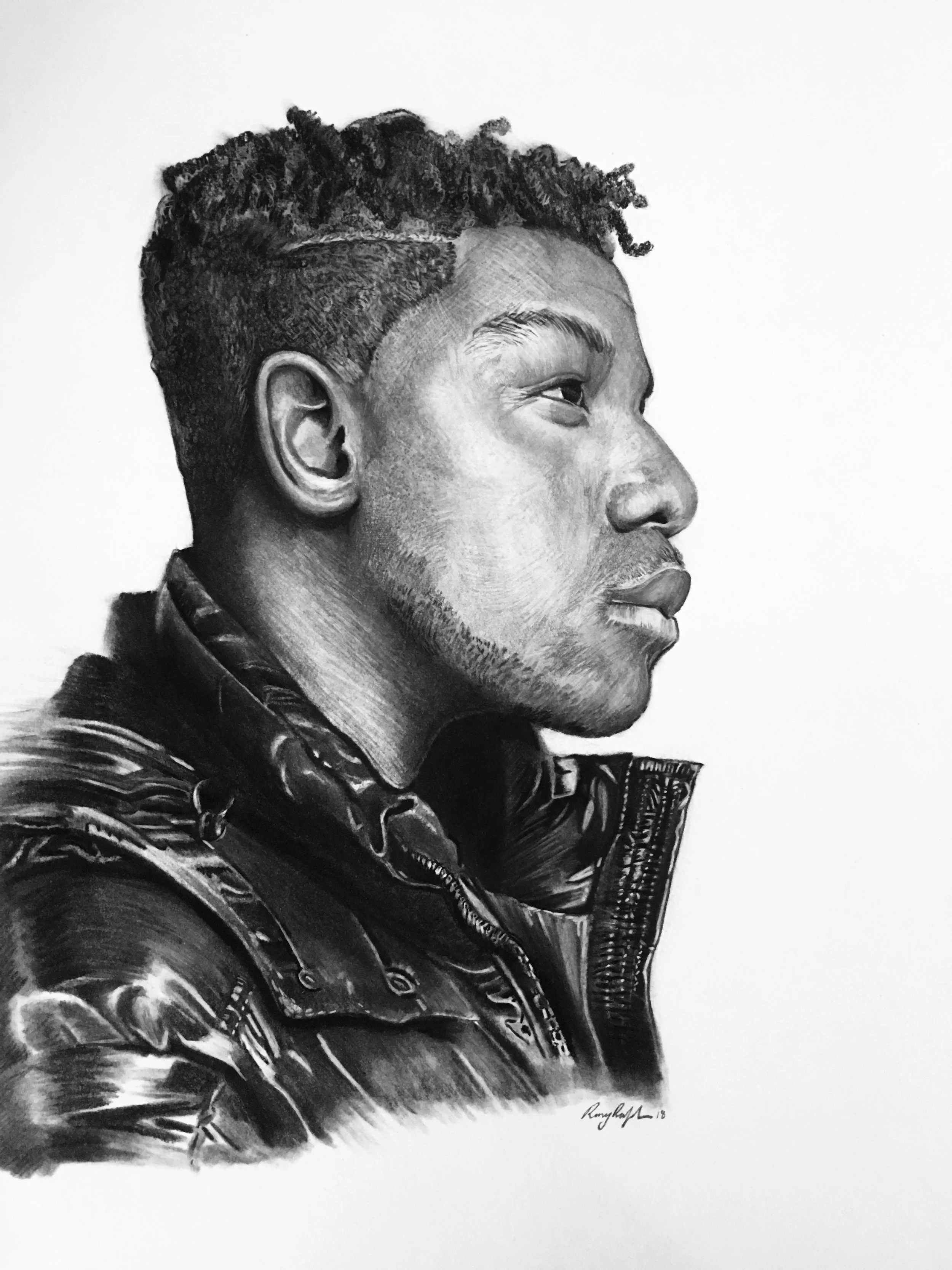 Whether influenced by photographic references or developed through personal observation, each piece explores the connection between subject and viewer, often beginning with the gaze. This collection is a space where realism meets imagination and where technique is used to draw out mood, presence and story.
